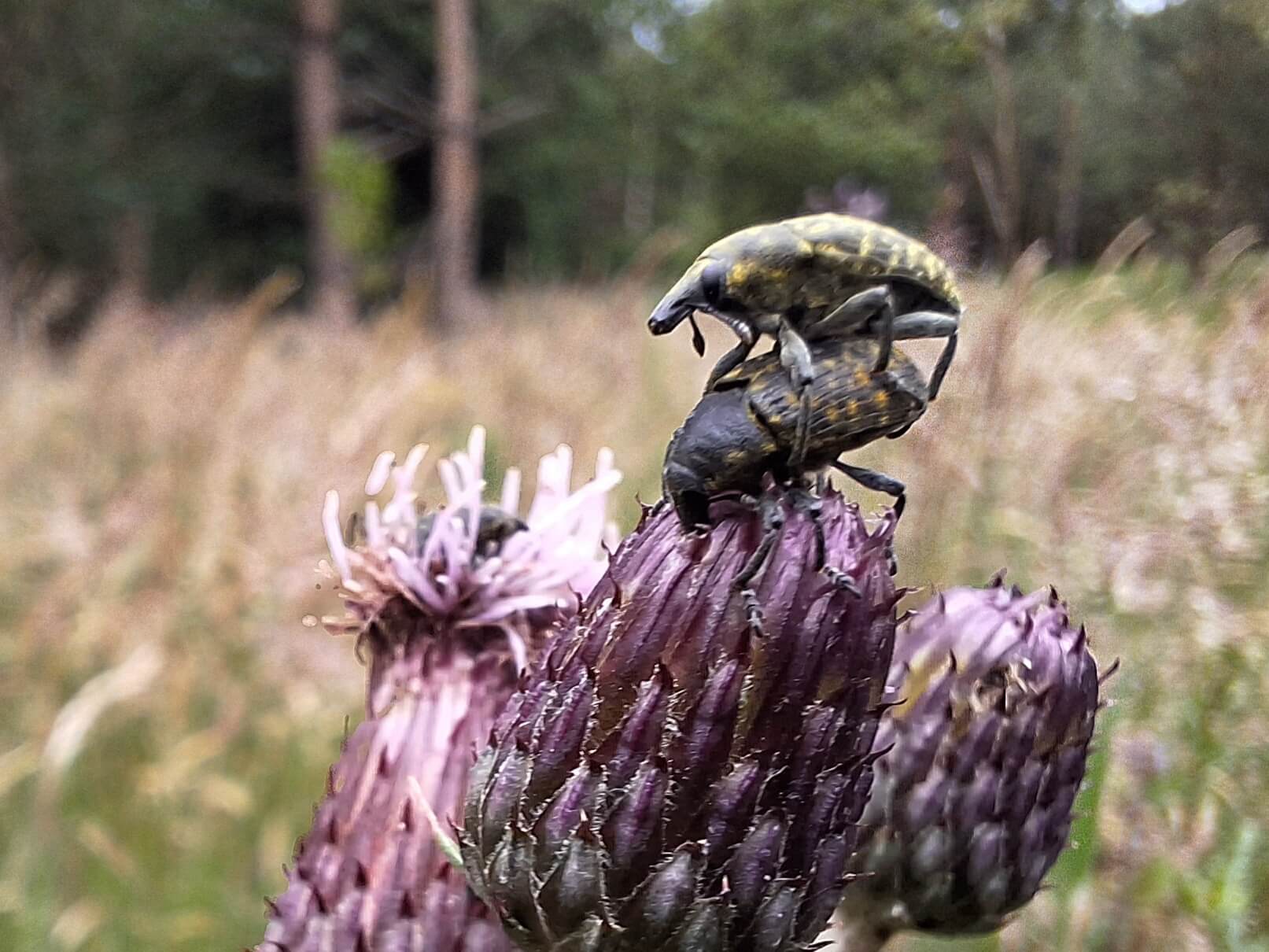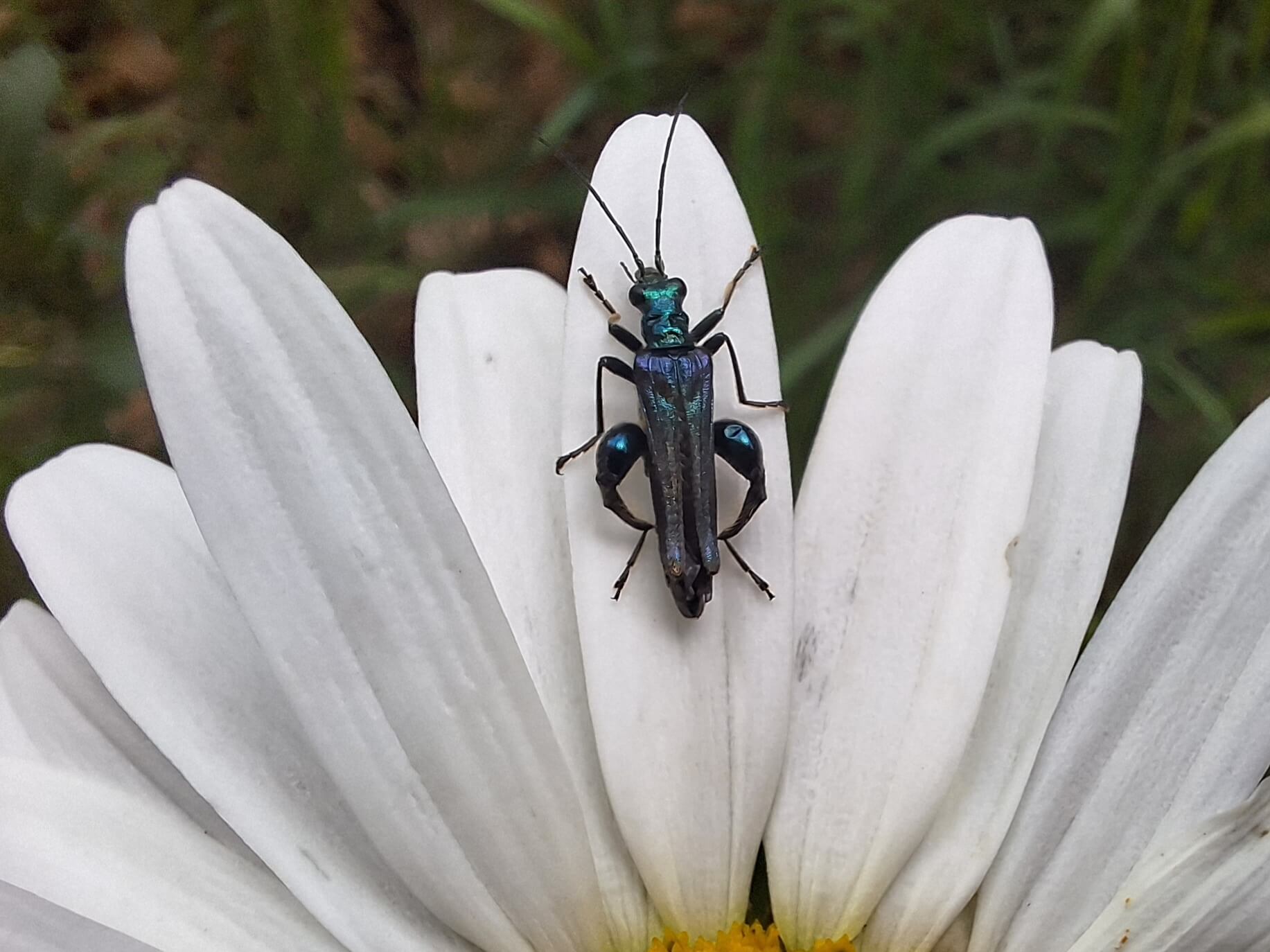 Fraaie schijnbok: De mannelijke variant van de fraaie schijnboktor is te herkennen aan zijn dikke dijen. Ze hebben een prachtige metalen glans. Ze zijn te vinden in bloemen, op zoek naar stuifmeel.