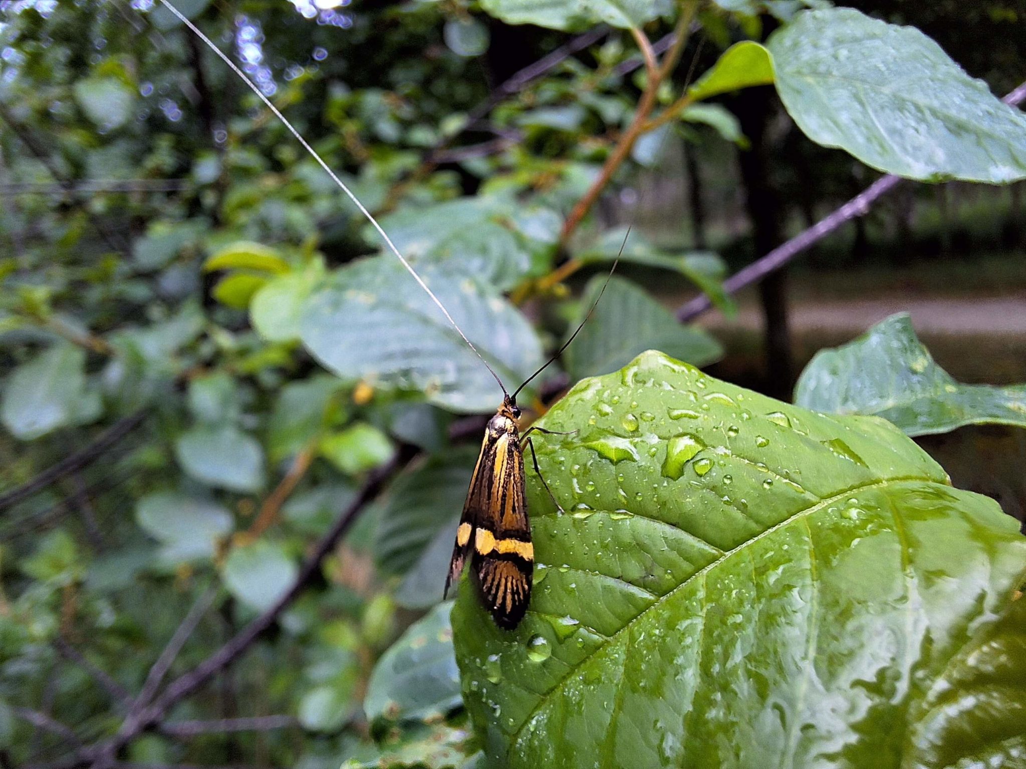 Geelbandlangsprietmot: Dit is een vlinder uit de familie langsprietmotten. Het is een nachtvlinder die overdag vliegt. Alleen de mannetjes hebben lange sprieten zoals op de foto te zien is.
