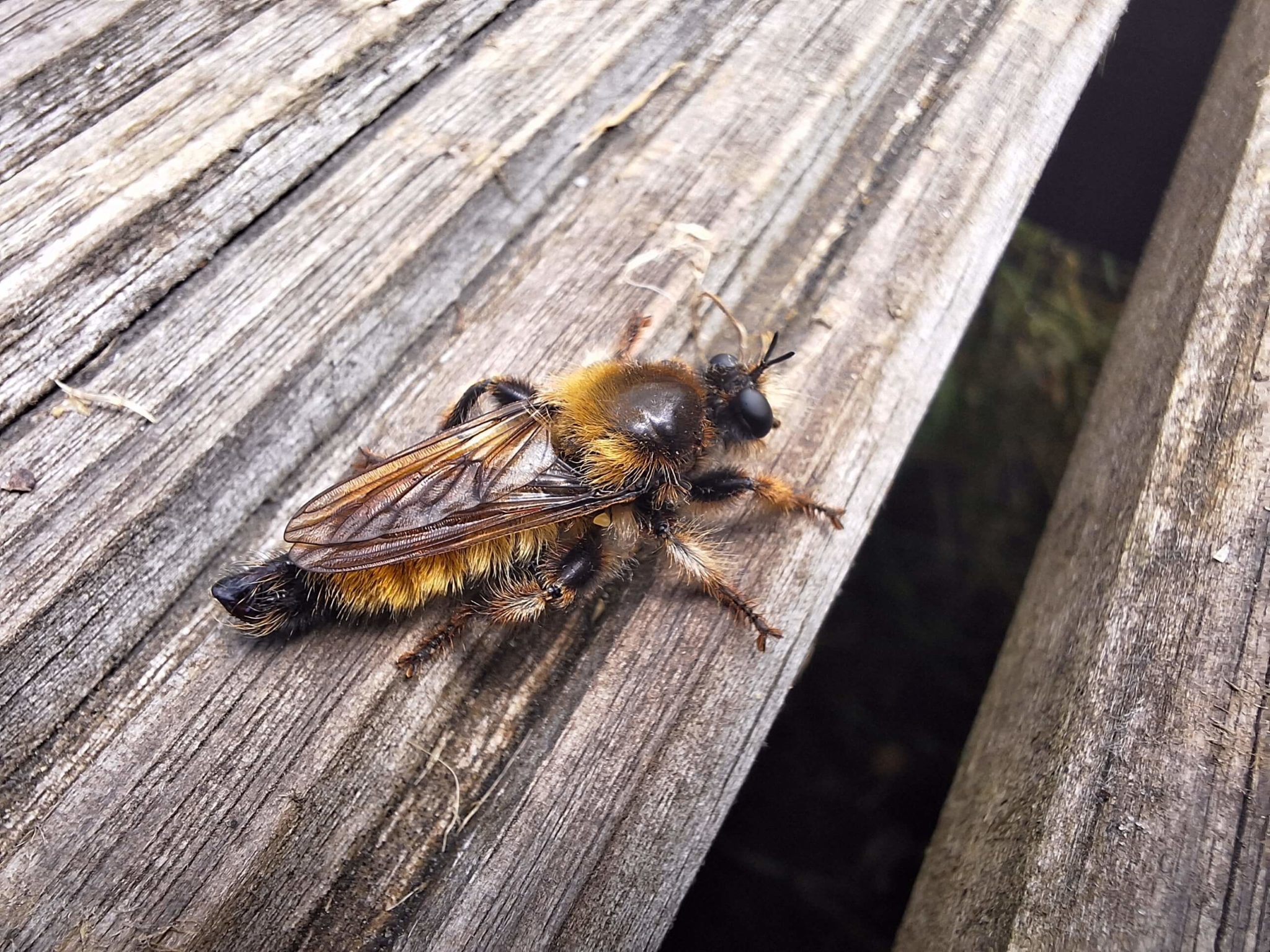 De gele hommelroofvlieg heeft wel iets weg van een hommel, maar is een echte roofvlieg. Ze vangen en verorderen zelfs vlinders, libellen en sprinkhanen.