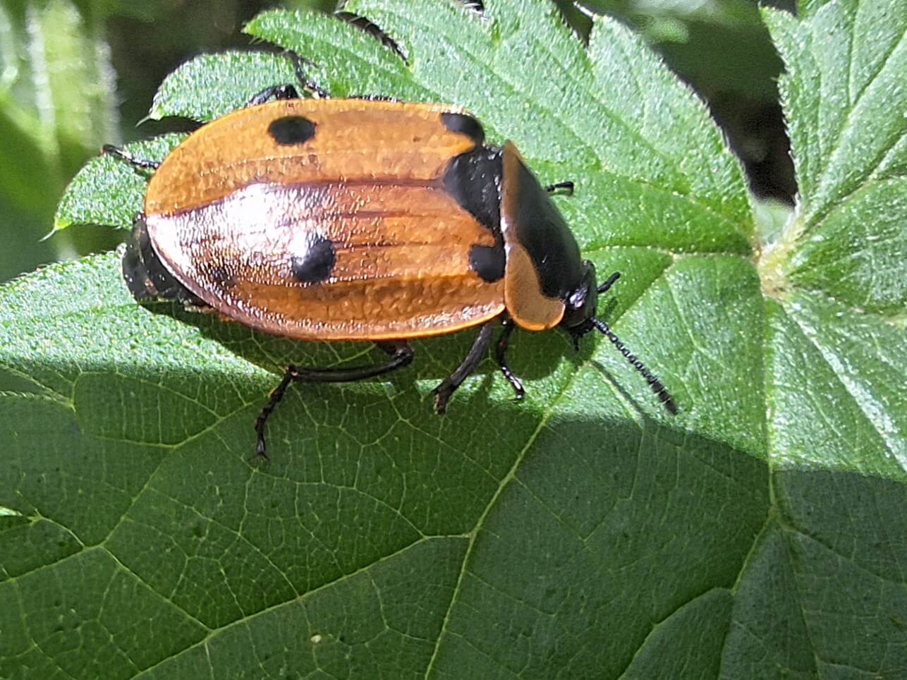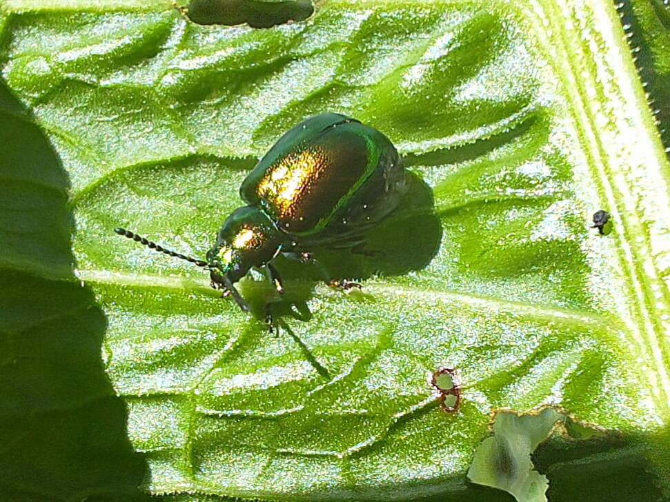 Het groene zuringhaantje is een bladkever. Ze eten uitsluitend zuring, van larve tot volwassen kever.