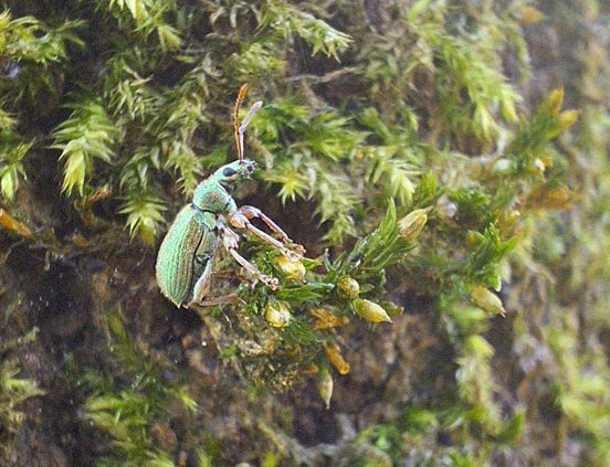 De groene struiksnuitkever staat ook wel bekend als de zijdeglansbladsnuitkever. Hij zit het liefst op berken, maar ook op eiken, beuken of meidoorns.