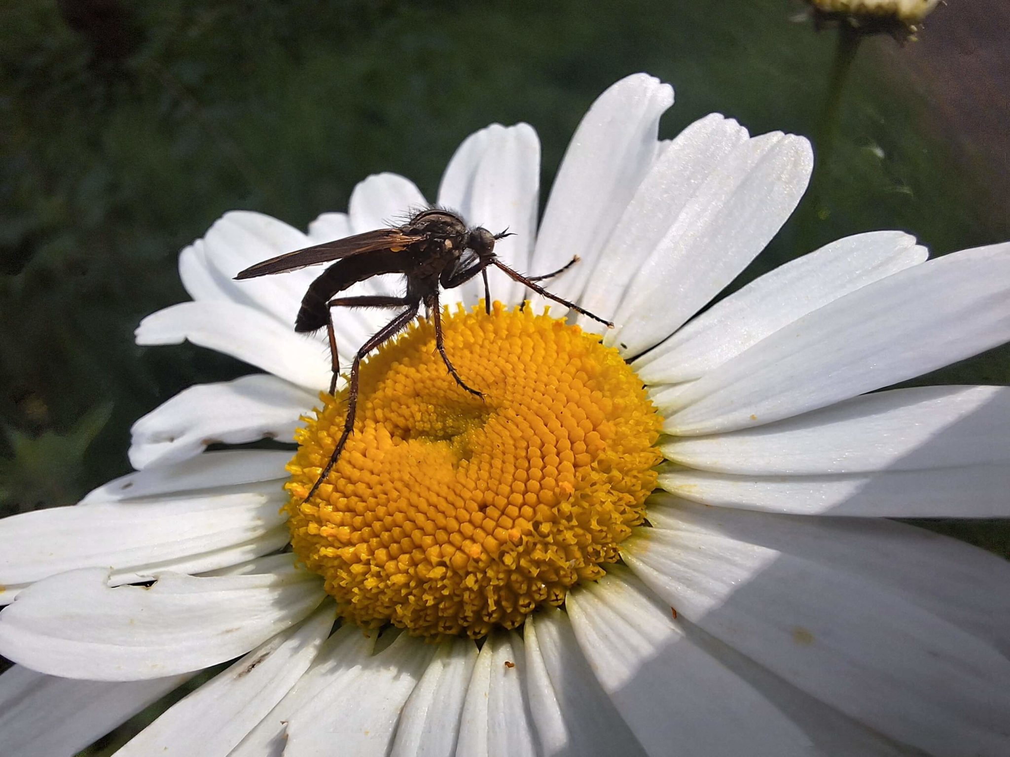 De grote dansvlieg zuigt nectar uit bloemen, met een lange zuigsnuit. Je kunt ze tegenkomen tussen mei en augustus.