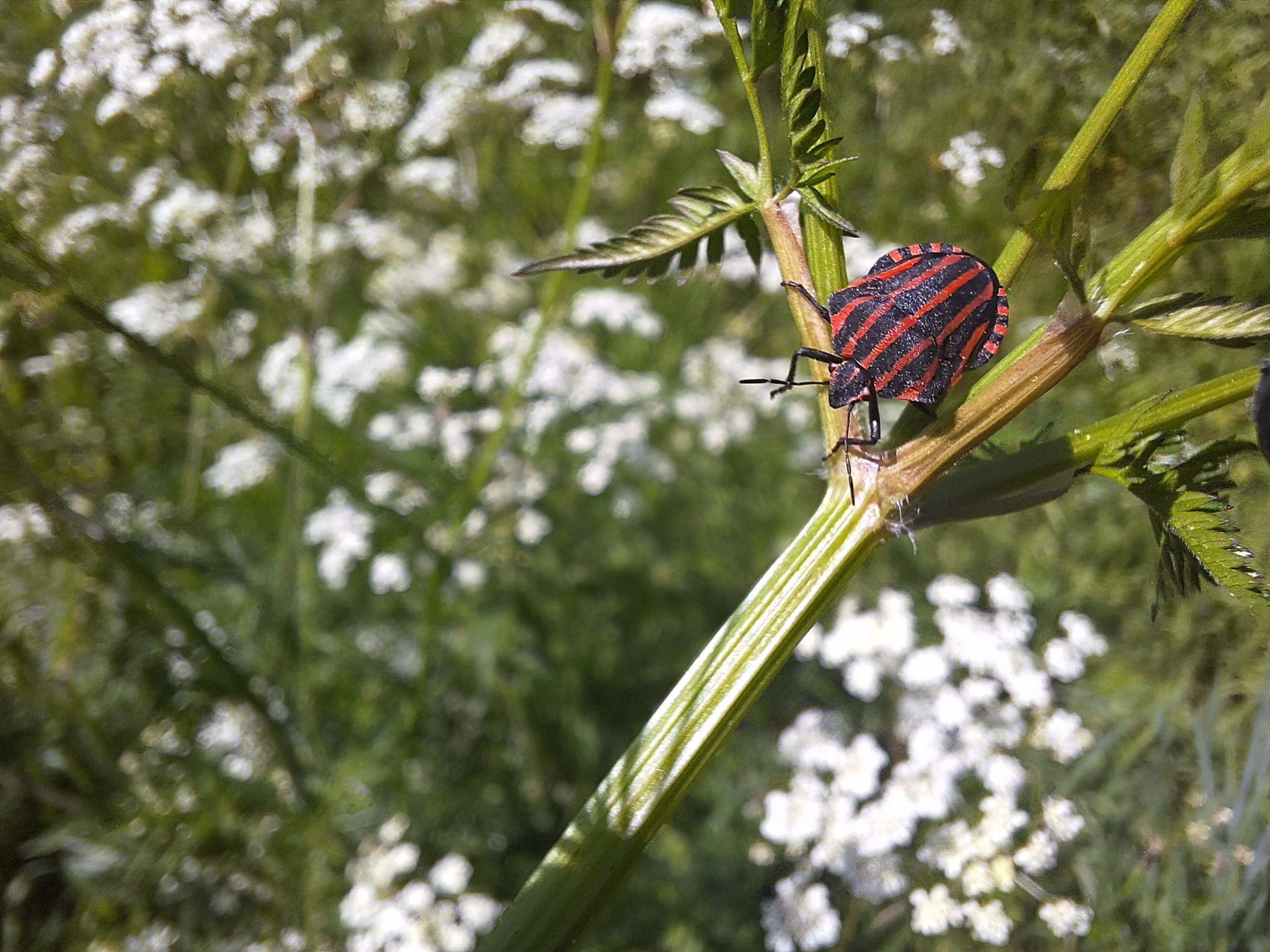 De rode halsbandwants voedt zich met brandnetels, maar doet zich soms ook tegoed aan andere insecten met zijn steeksnuit. Opvallend, want dit insect is familie van de plantenwantsen.