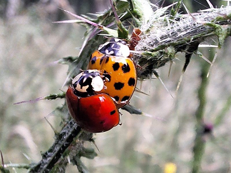 Wie nu een rondje wandelt op Mepperdennen, komt veel lieveheersbeestjes tegen. Wij konden er al een heleboel verschillende fotograferen. Alle foto’s die u hier ziet, zijn gemaakt op Natuurbegraafplaats Mepperdennen en u kunt hierop klikken om ze te vergroten. Welke soorten lieveheersbeestjes het zijn? We hebben ons best gedaan om ze een naam te geven, maar het is ontzettend lastig om ze nauwkeurig te determineren. Simpelweg omdat er ontzettend veel varianten zijn (zo’n 5000 soorten wereldwijd), die soms behoorlijk op elkaar lijken.