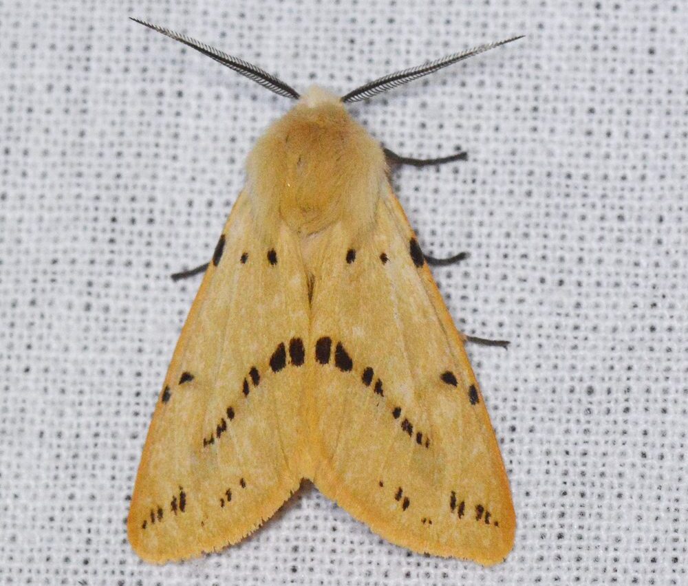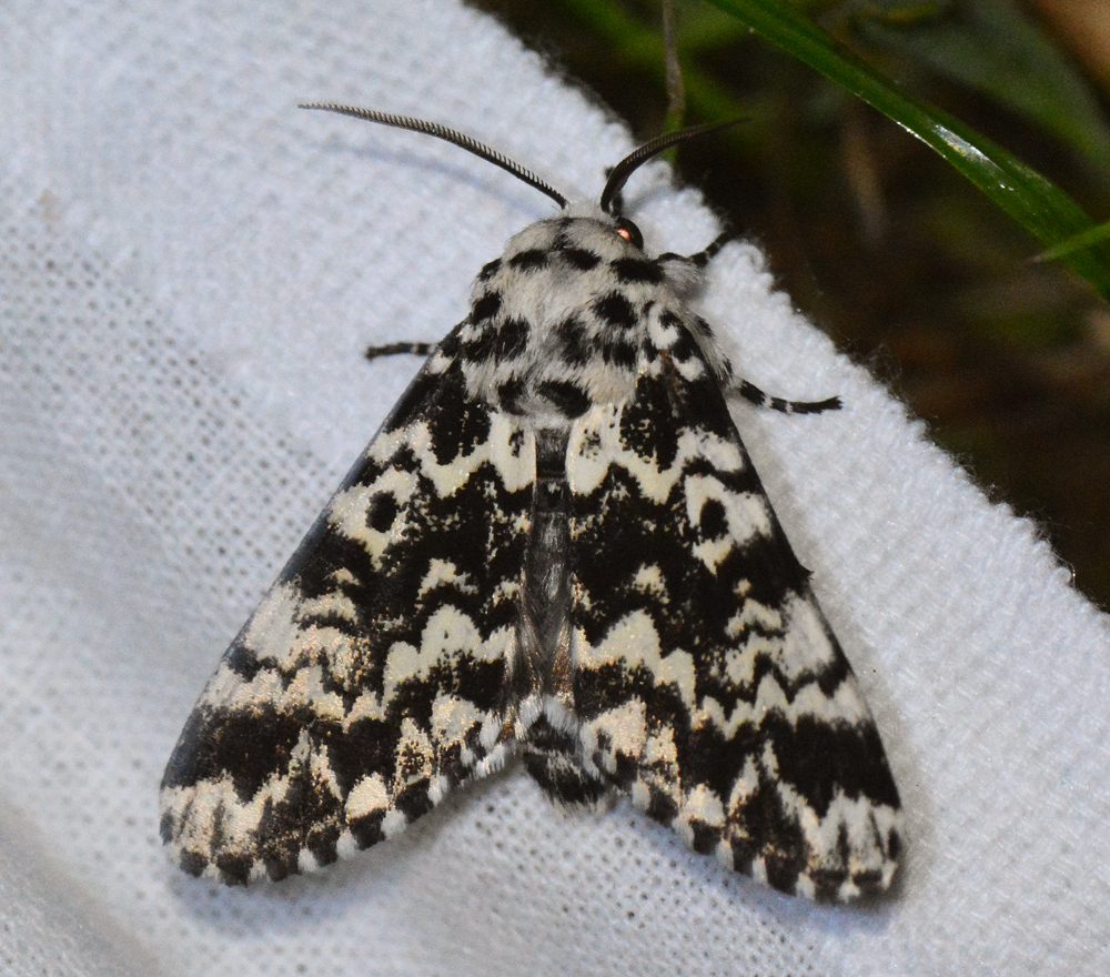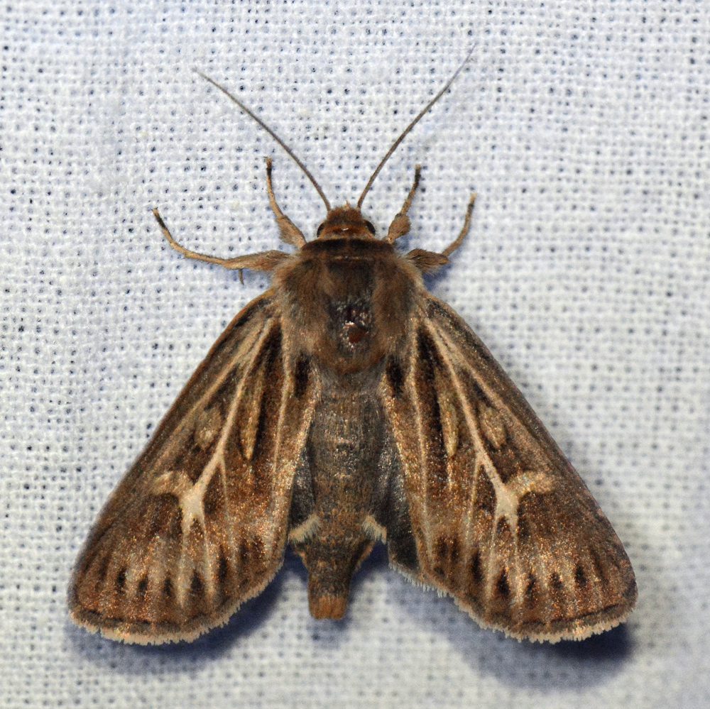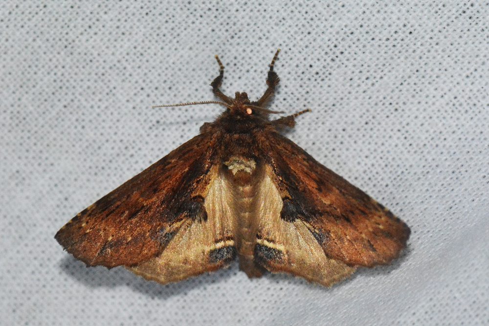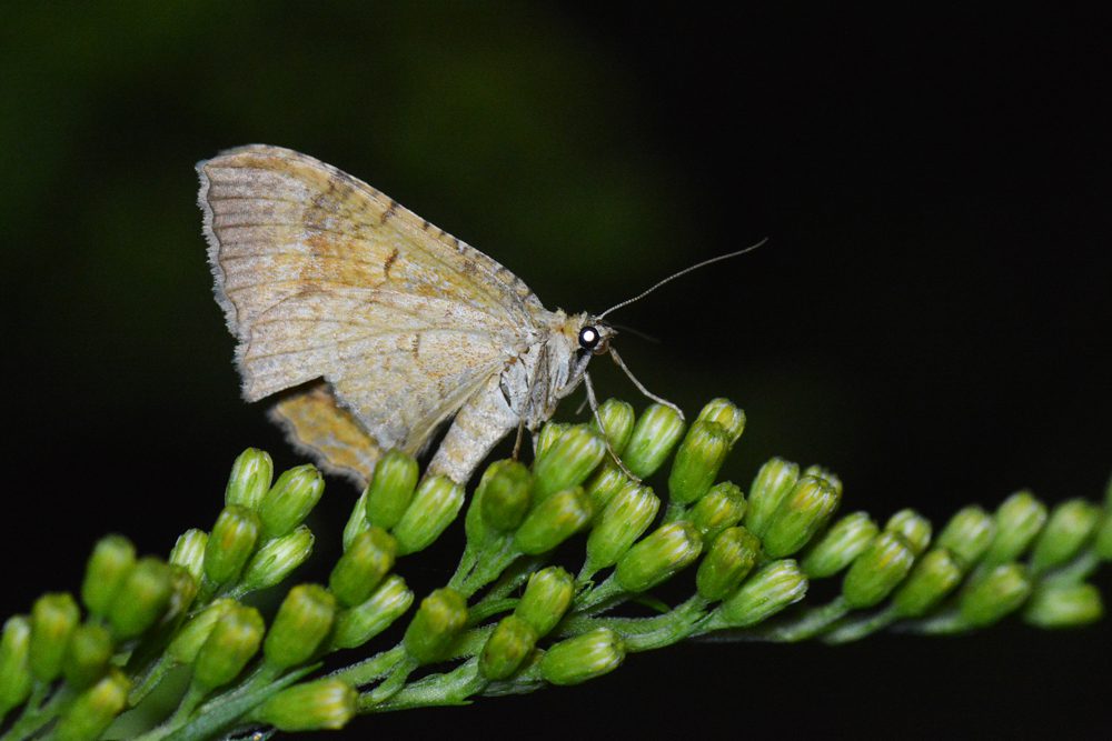 Eén van de dingen die Jeffrey en ik deze avond/nacht leerden, is dat er veel geduld nodig is om nachtvlinders te spotten. Pas toen het helemaal donker was, kwam het op gang, maar toen bleek het ook helemaal de moeite waard. Toen we tijdens het wachten een kop koffie dronken, zagen we ineens activiteit rond het witte doek. Het leek wel of er een klein vogeltje vloog. Het bleek een dennenpijlstaart. Een imposant exemplaar en daarmee het hoogtepunt van de avond. Pijlstaarten vliegen snel en krachtig en kunnen ook voor een bloem blijven hangen, zoals een kolibri. De rupsen zijn groot en glad, met aan de achterkant een soort staartje. Wim van Nee, één van onze vrijwilligers, durfde het aan om de pijlstaart vast te leggen met zijn camera. Ook alle andere foto’s in dit artikel heeft hij gemaakt.