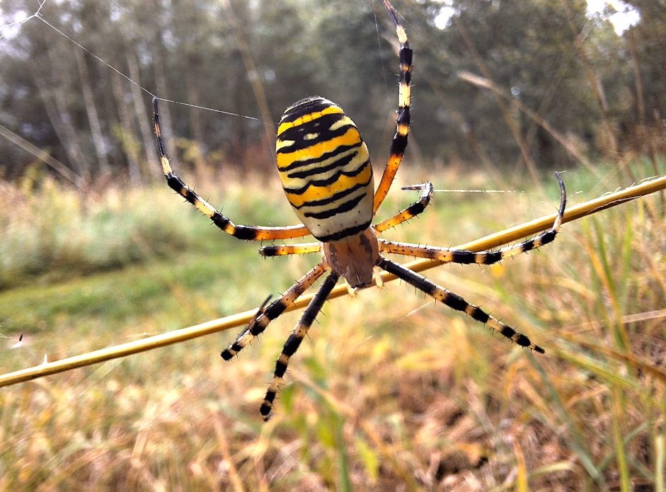 Misschien wel het meest indrukwekkende exemplaar dat je kunt tegenkomen is de wespspin. Oorspronkelijk komt deze spin uit het Middellandse Zeegebied, maar door het veranderende klimaat is de felgeel met zwart gestreepte spin zich steeds noordelijker gaan vestigen. Pas in 1980 is de wespspin voor het eerst waargenomen in Limburg. De wespspin wordt ook wel tijgerspin genoemd. Hij voedt zich met grote insecten, zoals sprinkhanen, hommels of libellen. De spin kan niet steken, maar wel bijten. Deze beet is niet gevaarlijk voor mensen. Opmerkelijk is dat de vrouwtjes aanzienlijk groter zijn (tot 20 mm) dan de mannetjes (tot 5 mm). Na het paren kan het vrouwtje het mannetje inwikkelen en later opeten. Ze spint vervolgens bruine eicocons, waar soms wel 400 eitjes in worden gelegd.